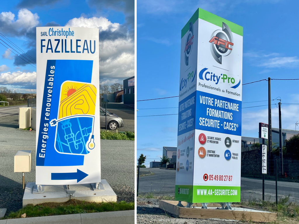 Maximisez votre présence avec nos totems, des structures imposantes qui se dressent fièrement pour représenter votre entreprise. Nous créons des totems personnalisés qui garantissent une visibilité accrue et un impact durable auprès de votre public cible.