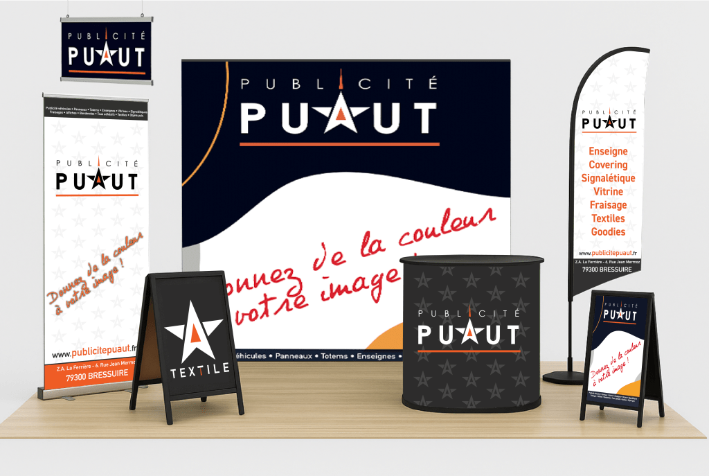 Dynamisez votre image de marque avec la gamme complète de solutions de signalétique chez Publicité Puaut. Que ce soit à travers nos panneaux d’affichage, nos impressions numériques de haute qualité, nos adhésifs sur mesure ou une vitrophanie accrocheuse, nous vous offrons des outils puissants pour promouvoir votre entreprise. Nos enseignes personnalisées, totems imposants et oriflammes dynamiques assurent une visibilité maximale, tandis que nos bâches publicitaires, banderoles percutantes et roll-up attractifs attirent l’attention où que vous soyez. Que ce soit pour vos stands d’exposition, vos panneaux de chantiers ou même l’application de films solaires et dépolis, Publicité Puaut est votre partenaire idéal pour une signalétique de qualité qui vous démarque sur le marché.